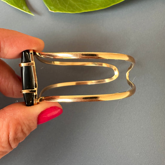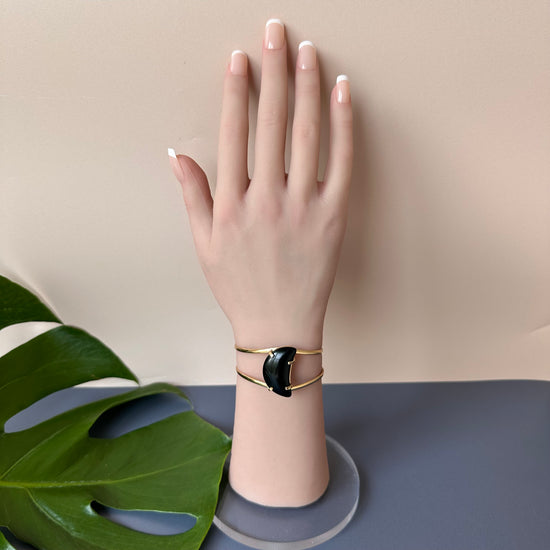 Black onyx crescent moon cuff bracelet