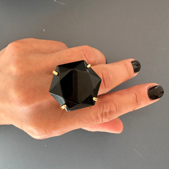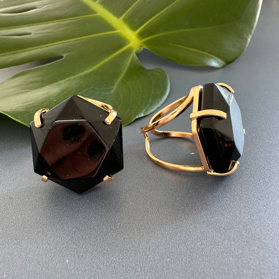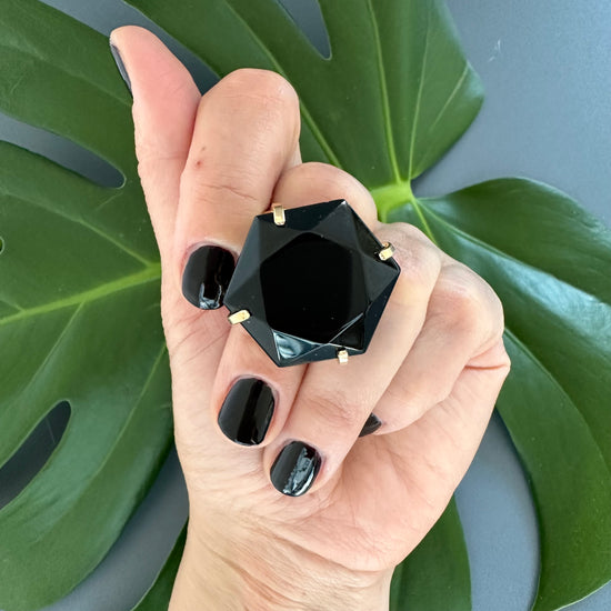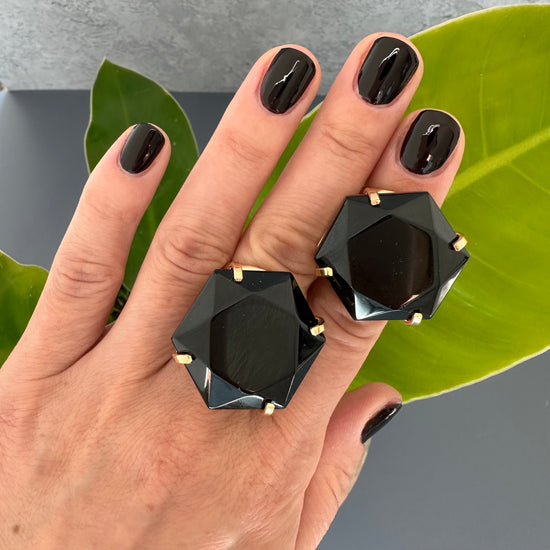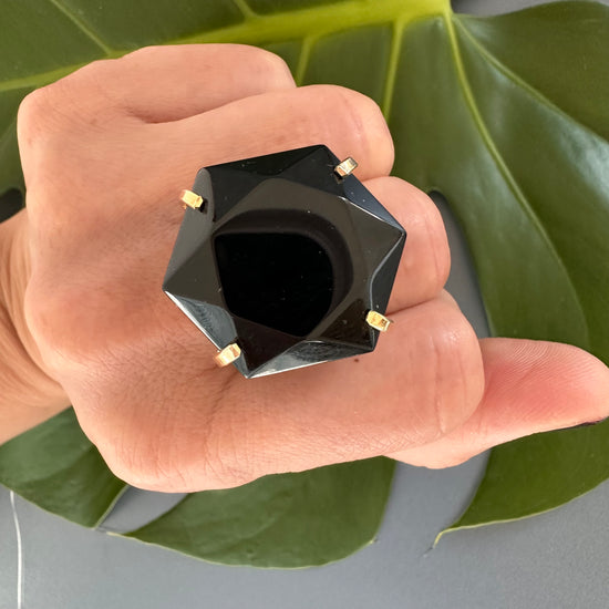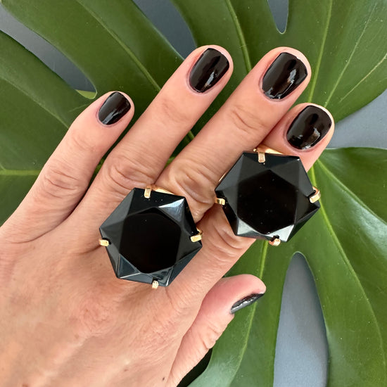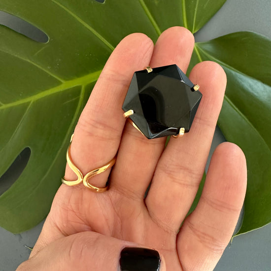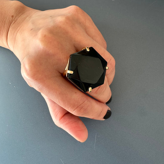 Black onyx hexagon ring