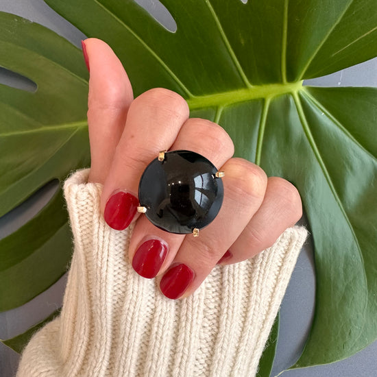 Black onyx round ring