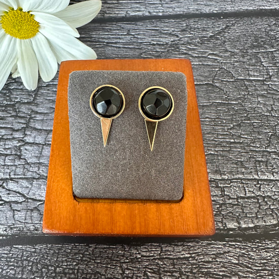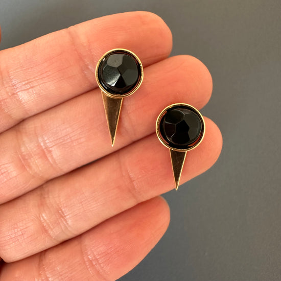 Black onyx studs with ear jacket