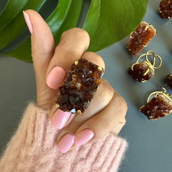 Druzy citrine cluster cocktail ring