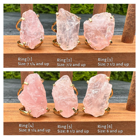 Large raw rose quartz gem ring