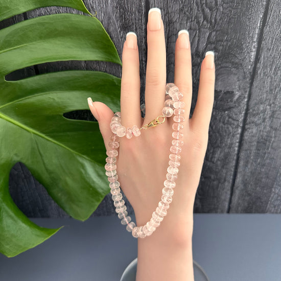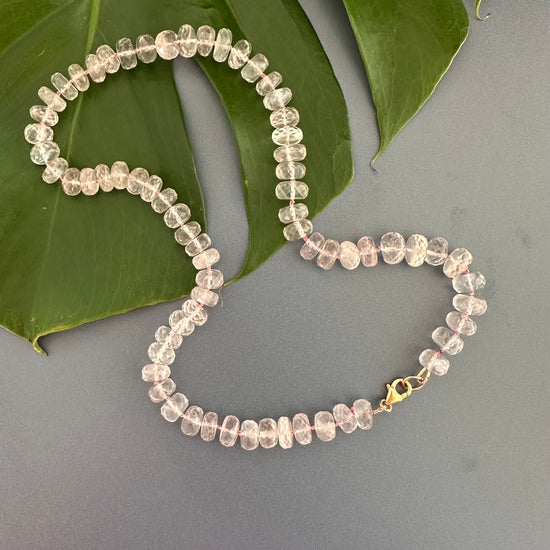 Rose quartz rondelle knotted necklace